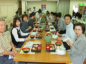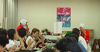 昼食を食べてる最中どこからともなく「ひょっとこ踊り」の登場。