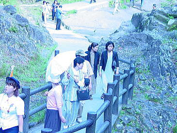 前夜は懇親会が催され、午後8時より夜神楽を拝観いたしました。が、 実はこれがメインだったのですが、酔っ払っててデジカメ持って行くの忘れてました。 8月18日(日) 「今国旅館」をあとにし、午前8時半高千穂峡へ。 昨夜はかなり飲みすぎた方もいらっしゃって渓谷へ行くのを断念された方もいらっしゃったようです。 船魂神社研修旅行(その4)へ トップ